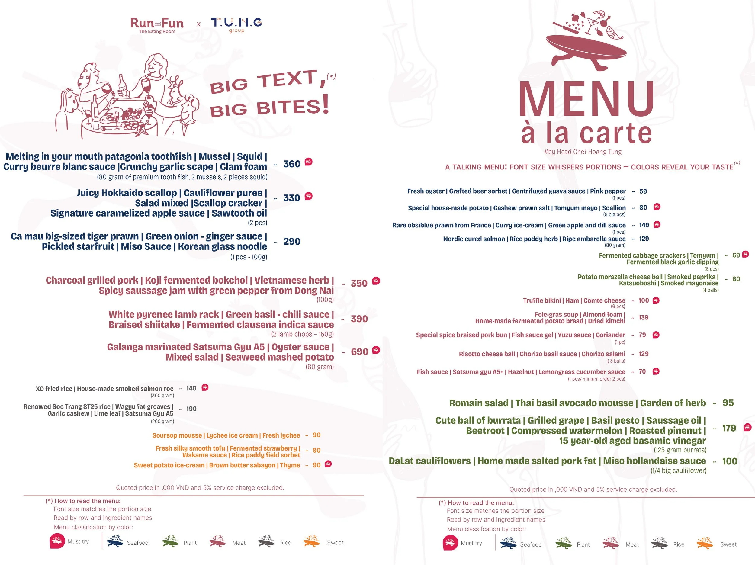 “There’s no grand 18 - 20 course tasting menu here that’s not what this place is about. Instead, we’ll serve an à la carte menu and 8 course tasting menu where the average bill is just a fraction of TUNG’s restaurants. Chef TUNG want it to feel like part of the neighborhood’s daily rhythm somewhere you can drop in for a drink after work on a Tuesday, have a cozy date on a Friday night, or gather your family around the table on a Sunday. It’s about good food, good company, and moments that feel effortless.”